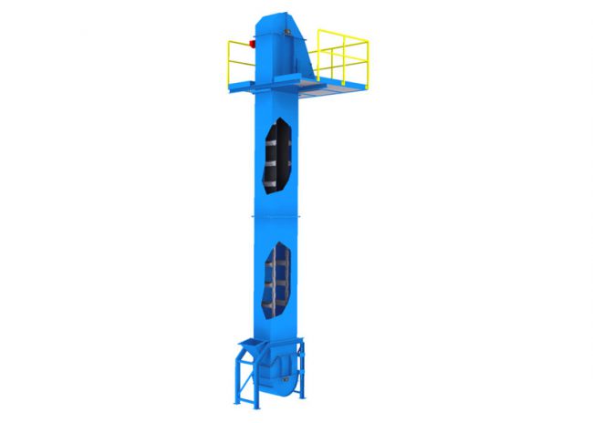 Chain elevators turn the buckets upside down when emptying them (gravity discharging) and can therefore handle most sticky materials better than belt elevators.